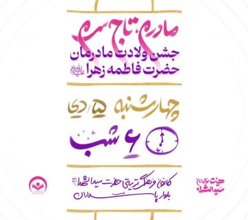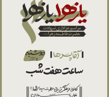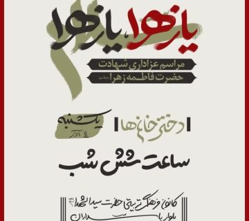 مراسم عزاداری شهادت مادرمان حضرت زهرا(س) ویژه دخترخانمای کلاس پنجم تا نهمAdmin۱۴۰۳/۱۱/۱۷دخترخانمای سیدالشهدایی، یازهرا دعوتید به مراسم عزاداری شهادت مادرمان حضرت زهرا(سلاماللهعلیها) ویژه دخترخانمای کلاس پنجم تا نهم یکشنبه ۱۱ آذرماه ... ادامه مطلب